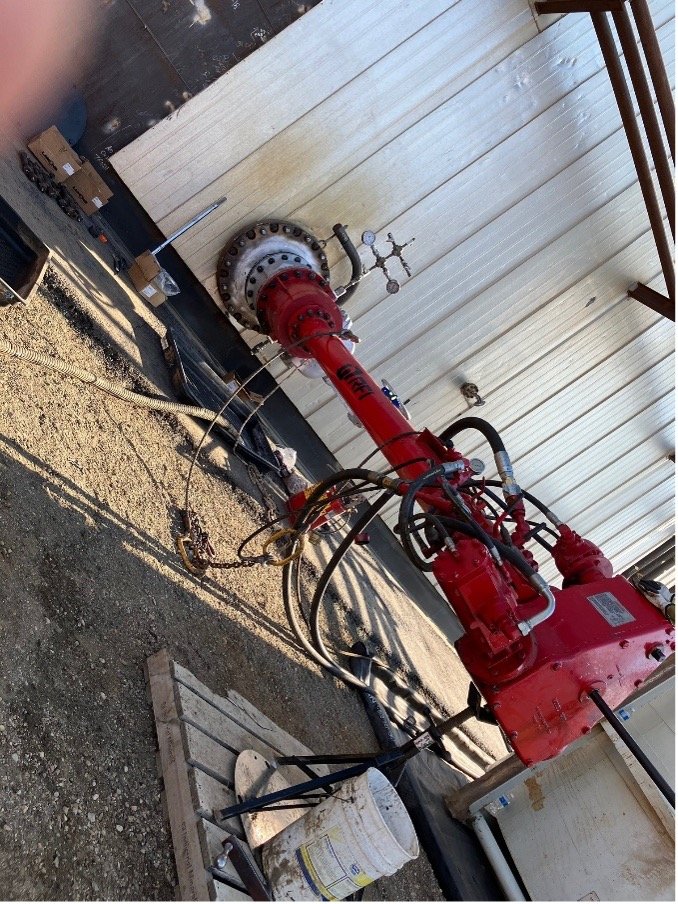 Fig. 2–Tank Manway Being Drilled via Hot Tap Machine